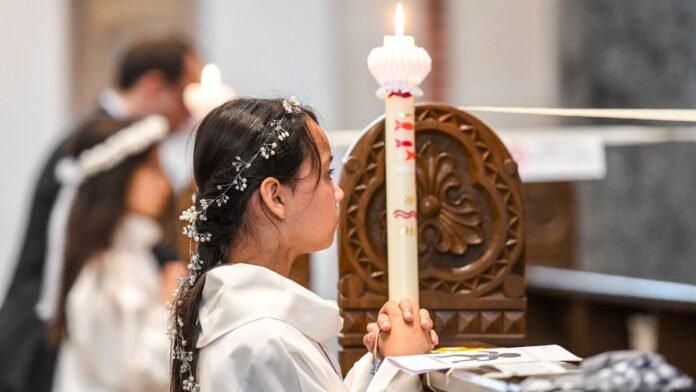 Am ersten Sonntag nach Ostern gehen bundesweit mehr als 100.000 katholische Kinder zur Erstkommunion. Der sogenannte Weiße Sonntag ist der klassische Termin dafür in den meisten Gemeinden. Der Begriff Kommunion kommt vom lateinischen “communio” für “Gemeinschaft”. Die Mädchen und Jungen dürfen zum ersten Mal die gewandelte Hostie empfangen als Zeichen für eine Freundschaft mit Jesus.